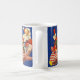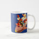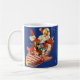 Diese snazzy Weihnachtstrinkende Tasse kennzeichnet eine Vintage Illustration von Weihnachtsmann Spielwaren in seiner Bandsüßigkeitsrakete liefernd. Die perfekte Spaß-Tasse für Fans von Sankt und alle Sachen retro!