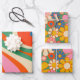Retro Trippy Blume und Wirbel Geschenkpapier Set