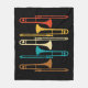 Retro Trombone zeigt vier Posaunen in einem Vintag bedrückten Look. Dieses Vintage Posaunisten-Shirt ist ideal für Jazzmusiker, New Orleans, Bebop, sanften Jazz, Saxsolos, Rockmusik, Big Band und Jazz Fusion.