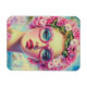 Diese traumhaft retro inspiriert Abbildung zeigt eine glamouröse Frau in übergroßen rosa Sonnenbrillen und eine blühende Blumenschwimmenkappe, Set vor einem ruhigen tropischen Hintergrund von Segelbooten und blauen Himmeln. Ideal, um Vintage Sommervibes und kühne feminine Energie zu Ihren Redbubble-Produkten wie Wandkunst, Aufkleber oder Kleidung hinzuzufügen. Eine lebendige Feier der Küsten-Mode und Blumenfantasie.