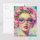 Diese traumhaft retro inspiriert Abbildung zeigt eine glamouröse Frau in übergroßen rosa Sonnenbrillen und eine blühende Blumenschwimmenkappe, Set vor einem ruhigen tropischen Hintergrund von Segelbooten und blauen Himmeln. Ideal, um Vintage Sommervibes und kühne feminine Energie zu Ihren Redbubble-Produkten wie Wandkunst, Aufkleber oder Kleidung hinzuzufügen. Eine lebendige Feier der Küsten-Mode und Blumenfantasie.