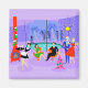 Dieses Retro Tropical Christmas Party Magnet ist festlich genug, um jedem die Aussicht auf den Urlaub zu erhellen! Das Design des Cartoon besticht durch die ausgeklügelte Feier, die normalerweise nur in Weihnachtsfilmen aus den 1960er Jahren zu sehen ist. Ein modernes Wohnzimmer aus der Mitte des Jahrhunderts ist mit Partygästen gefüllt, die die geschmackvolle, lila Dekoration genießen. Eine hübsche Frau in der Uniform einer französischen Magd trägt ein Tablett mit Martinis. Sie ist neben einem roten Kamin mit Kamin und einem rauschenden Feuer stehend. Drei grüne Strümpfe hängen mit Sorgfalt am Mod-Kamin. In der Mitte des Raumes befindet sich ein schönes Paar, das sich in orangefarbenen Eierstühlen niederlässt. Die Frau trägt ein festliches, grünes Kleid. Der Mann trägt einen schwarzen Anzug mit einer roten Krawatte. Sie halten jeweils einen Martini. Ein weiteres Paar sitzt unter einem zarten, gelben Sputnik-Kronleuchter. Der ausgezeichnete, grauhaarige Gentleman trägt einen blauen Anzug, hellblaues Shirt und rote Krawatte. Er trägt auch eine Weihnachtsmannmütze und hält einen Martini in jeder Hand, was der Welt zeigt, dass seine Feiertage noch lange nicht vorbei sind. Sein Begleiter ist eine formschöne Blondine in einem atemberaubenden roten Kleid. Herr Distinguished sollte besser aussehen, weil sie einen Funken Misteloe in der Hand hält. Vor dem Zimmer befindet sich ein kitschiger, rosa Weihnachtsbaum mit aquamarinen Ornamenten und einem gelben Stern. Hinter dieser Szene können wir durch die Glaswände von Boden bis Decke sehen. Im Außenbereich befindet sich ein runder, türkisfarbener Pool. Wir können die lila Silhouette einer Frau sehen, die ihre Beine ins Wasser taucht. Zwischen lila Steinmauern stehen Silhouetten von Palmen, die mit Ornamenten und Weihnachtsbeleuchtung geschmückt sind. Auch die Silhouetten der Tanz- und Gesprächspartner sind sichtbar. Wenn es eine Sache gibt, die das beweist, ist es, dass Menschen, die in Glashäusern leben, zwar keine Steine werfen sollten, aber auf jeden Fall Party werfen sollten!