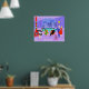 Dieses Retro Tropical Christmas Party Poster ist festlich genug, um jedem die Aussicht auf den Urlaub zu erhellen! Das Design des Cartoon besticht durch die ausgeklügelte Feier, die normalerweise nur in Weihnachtsfilmen aus den 1960er Jahren zu sehen ist. Ein modernes Wohnzimmer aus der Mitte des Jahrhunderts ist mit Partygästen gefüllt, die die geschmackvolle, lila Dekoration genießen. Eine hübsche Frau in der Uniform einer französischen Magd trägt ein Tablett mit Martinis. Sie ist neben einem roten Kamin mit Kamin und einem rauschenden Feuer stehend. Drei grüne Strümpfe hängen mit Sorgfalt am Mod-Kamin. In der Mitte des Raumes befindet sich ein schönes Paar, das sich in orangefarbenen Eierstühlen niederlässt. Die Frau trägt ein festliches, grünes Kleid. Der Mann trägt einen schwarzen Anzug mit einer roten Krawatte. Sie halten jeweils einen Martini. Ein weiteres Paar sitzt unter einem zarten, gelben Sputnik-Kronleuchter. Der ausgezeichnete, grauhaarige Gentleman trägt einen blauen Anzug, hellblaues Shirt und rote Krawatte. Er trägt auch eine Weihnachtsmannmütze und hält einen Martini in jeder Hand, was der Welt zeigt, dass seine Feiertage noch lange nicht vorbei sind. Sein Begleiter ist eine formschöne Blondine in einem atemberaubenden roten Kleid. Herr Distinguished sollte besser aussehen, weil sie einen Funken Misteloe in der Hand hält. Vor dem Zimmer befindet sich ein kitschiger, rosa Weihnachtsbaum mit aquamarinen Ornamenten und einem gelben Stern. Hinter dieser Szene können wir durch die Glaswände von Boden bis Decke sehen. Im Außenbereich befindet sich ein runder, türkisfarbener Pool. Wir können die lila Silhouette einer Frau sehen, die ihre Beine ins Wasser taucht. Zwischen lila Steinmauern stehen Silhouetten von Palmen, die mit Ornamenten und Weihnachtsbeleuchtung geschmückt sind. Auch die Silhouetten der Tanz- und Gesprächspartner sind sichtbar. Wenn es eine Sache gibt, die das beweist, ist es, dass Menschen, die in Glashäusern leben, zwar keine Steine werfen sollten, aber auf jeden Fall Party werfen sollten!