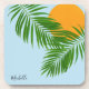 Retro Tropical Sun Palm Blätter Blauer Minimaler N Getränkeuntersetzer