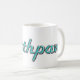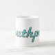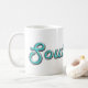 Das Wort südpaw in türkis mit einem silbernen Trimm.