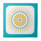 Diese hübsche Keramik hat ein hübsches Retro-Sonnenburstbild in leuchtendem Türkis und Orange, was ihr ein buntes südwestliches Aussehen verleiht. Das Bild ist weiß mit einem türkisfarbenen Rahmen.