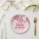 Zwei Groovy! Retro inspirierte 2. Geburtstag mit Schriftart und Farbtönen im Stil der 70er Jahre, floral in kräftig rosa und lila Farben.
