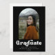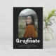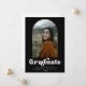Eine trendige Abschluss-Anzeigenkarte mit einem Foto in Bogenform und "graduate" in dickem, abgerundeten Retro-Schriftart in Weiß auf schwarzem Hintergrund. Personalisieren Sie Ihre Daten.