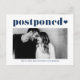 Retro Typografie Blue Foto Wedding Postponement Ankündigungspostkarte
