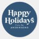 Einfache Weihnachtsaufkleber mit "Happy Holidays", in weißer Retro-Schrift mit marineblau Hintergrund dargestellt. Personalisieren Sie die dunkelblauen Ferienaufkleber mit Ihrem Namen oder eigenem Text. Die stilvollen Ferienaufkleber eignen sich hervorragend für Umschlag Aufkleber, Geschenkverpackungen, Gastgeschenke und vieles mehr! Entworfen, um sich mit unserer Retro Typografy Urlaubssammlung abzustimmen.