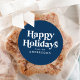 Retro Typografie Blue Happy Holidays Runder Aufkleber