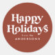 Einfache Weihnachtsaufkleber mit "Happy Holidays" in weißer Retro-Schrift mit Terracotta-braunem Hintergrund. Personalisieren Sie die Terracotta Urlaubsticker mit Ihrem Namen oder Text. Die stilvollen Ferienaufkleber eignen sich hervorragend für Umschlag Aufkleber, Geschenkverpackungen, Gastgeschenke und vieles mehr! Entworfen, um sich mit unserer Retro Typografy Urlaubssammlung abzustimmen.