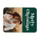 Stilvolle, trendige Urlaubsmagneten mit "Frohe Weihnachten" oben in einem weißen Retro-Stil Schriftart-Overlay mit dunkelgrünem Hintergrund. Personalisieren Sie die Vorderseite des modernen Urlaubsmagneten, indem Sie Ihren Namen und Foto hinzufügen. Konzipiert, um mit unserer Retro Typografie Weihnachtskartensammlung zu koordinieren.