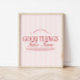 Retro Typografie 'Gute Dinge brauchen Zeit' gestreiftes Poster drucken. Mit einer Vintagen Farbpalette und einem luxuriösen Stil im Typografie-Design ist dieses stilvolle Stück ideal, um Ihrer Zuhause eine motivierend Touch hinzuzufügen.