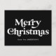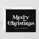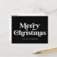 Stilvolle, trendige Urlaubspostkarte mit "Frohe Weihnachten" auf der Vorderseite in einem weißen Retro-Stil Schriftart-Overlay mit schwarzem Hintergrund oder Farbe Ihrer Wahl. Personalisieren Sie die Vorderseite der Non-Foto-Urlaubspostkarte, indem Sie Ihren Namen/Firmennamen, das Jahr oder einen anderen benutzerdefinierten Text hinzufügen. Auf der Rückseite der Postkarte finden Sie Ihre Rücksendeadresse und Ihre individuelle Nachricht in festlich schwarzem Text. Konzipiert, um mit unserer Retro Typografie Weihnachtskartensammlung zu koordinieren.