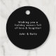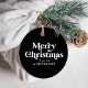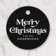 Moderne Weihnachtsmarken mit "Frohe Weihnachten" in weißer Retroschrift mit schwarzem Hintergrund. Personalisieren Sie die Vorderseite der schwarz-weißen Urlaubsfavoriten Tags mit Ihrem Namen oder benutzerdefinierten Text. Auf der Rückseite des Tags wird die benutzerdefinierte Meldung angezeigt. Konzipiert, um mit unserer Retro Typografie Weihnachtskollektion zu koordinieren.