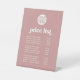 Dieses trendige, boho staubige Rose kleine Business-Tabletop-Podest-Schild mit weißer Retro-Typografie auf einem staubigen, rosa Hintergrund der Rose. Es gibt Platz für Ihr Logo und eine Preisliste oder ein Menü von Dienstleistungen für Ihr Unternehmen. Ein berufliches und stilvolles Design, das sich perfekt für jeden Beruf eignet, z.B. Makeup-Künstler, Friseur-Stylist, Wellness-Center und vieles mehr.