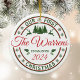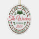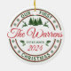 Personalisieren Sie dieses niedliche Retro "Unser erstes Weihnachtsfest" verheiratet [Der Nachname} etabliert [Jahr - 2024] Runde Keramik-Ornament - macht ein perfektes Brautgeschenk nach Maß, um die Neuvermählten als Mr & Mrs.