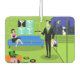 Dieses Retro Urban Cartoon Couple Air Freshener besticht durch den Cartoon eines elegant eingerichteten Penthouse Apartments mit Blick auf die Skyline der Stadt. Die Wohnung verfügt über einen grünen Fußboden und eine grüne Ziegelmauer. An der Wand sind vier klassische Movie Martini Stretched Canvas Prints, die auch im StrangeLittleOnion's Zazzle Store erhältlich sind (Hinweis, Hinweis!). Drei der Drucke haben einen türkisfarbenen Hintergrund und einer auf einem schwarzen Hintergrund. Unter den Leinwand gedruckt, ist ein blaues, modernes Sofa aus der Mitte des Jahrhunderts. Eine raffinierte, ravenhaarige Schönheit sitzt auf dem Sofa. Sie trägt ein klassisches, kleines, schwarzes Kleid mit einem heißen rosa Körper. Auf der gegenüberliegenden Seite des Raumes befindet sich ein großer, dunkler und gut aussehender Mann. Er trägt einen schwarzen Anzug, ein weißes Shirt und eine grüne Krawatte. Auf der einen Seite hält er ein Schallplattenalbum und auf der anderen hält er ein lustiges Albumcover. Auf dem Boden befindet sich ein Orangenottoman mit einem schwarzen und grünen Schallplattenspieler. Gegründet gegen den ottoman ist ein weiteres Album-Cover mit einem Plattenlauf von der Seite. Es gibt auch drei bunte Vinyl-Alben verstreut über den Boden. Hinter dem Mann können wir durch die Glasschiebetüren auf einen grünen Balkon sehen. Eine weiße Katze mit einem rosa Kragen ist auf dem Balkon am Rande des Balkons angeschnallt. Hinter der Katze befindet sich eine atemberaubende Wolkenkratzer-Silhouette mit gelben Halbmonden. Wenn das so ist, wie die andere Hälfte lebt, melde mich an!
