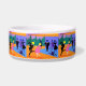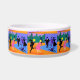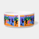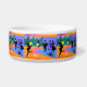 Dieses Retro Urban Dach Party Pet Bowl ist berauschend im Detail. Das Design des Cartoon besticht durch ein ausgeklügeltes Cocktail-Party, das normalerweise nur in Filmen aus den 1960er Jahren zu sehen ist. Es gibt viel für die Partygänger zu erledigen. Vom Komfort eines Penthouse-Apartments genießen die Gäste die Aussicht und das Ambiente. Die Beleuchtung Set die Stimmung und wir können die dunklen Silhouetten eines attraktiven Ehepaares sehen, das den Cha-cha tanzt. Auf der Etage befindet sich ein lila, tragbarer Plattenspieler, der zu Füßen des Tanzpaares steht. Mehrere Alben wurden in der Nähe verstreut. Auch mit der gedämpften Beleuchtung, die praktisch alles in den Zimmern in lila, blauen und schwarzen Farbtönen erscheinen lässt, können wir feststellen, dass alle an die Neuner gekleidet sind. Hinter dem Tanz, im Inneren, steht ein Gentleman in einem schwarzen Anzug, der ein Martini-Glas hält. Er spricht mit einer dunkelhaarigen Schönheit, die in der Nähe eines Fußbodens zu Deckenglaswänden stehend ist. Von einem Lampenständer aus strahlt eine Glühbirne aus dem Single ein romantisches Licht aus. Vermisst ist nur der Lampenschirm. Hm... Wo ist der Schatten? Es ist auf dem Kopf eines Zigeuners, der das Party nach draußen auf das orangefarbene Dach gebracht hat. Er got ganz klar ein paar schöne Tanzbewegungen und hat keine Angst, sie der Welt zu zeigen! Sein Begleiter ist eine formschöne, blonde Frau in einem knallrosa Kleid. Ihr Rücken ist gewölbt, während sie ihre Martini in ungehemmt zurückwirft. Jenseits des Party befindet sich eine atemberaubende aquamarine Wolkenkratzer-Silhouette mit lila Himmel. Wenn das so ist, wie die andere Hälfte lebt, melde mich an!
