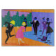 Dieses Retro Urban Dach Party Cutting Board ist im Detail berauschend. Das Design des Cartoon besticht durch ein ausgeklügeltes Cocktail-Party, das normalerweise nur in Filmen aus den 1960er Jahren zu sehen ist. Es gibt viel für die Partygänger zu erledigen. Vom Komfort eines Penthouse-Apartments genießen die Gäste die Aussicht und das Ambiente. Die Beleuchtung Set die Stimmung und wir können die dunklen Silhouetten eines attraktiven Ehepaares sehen, das den Cha-cha tanzt. Auf der Etage befindet sich ein lila, tragbarer Plattenspieler, der zu Füßen des Tanzpaares steht. Mehrere Alben wurden in der Nähe verstreut. Auch mit der gedämpften Beleuchtung, die praktisch alles in den Zimmern in lila, blauen und schwarzen Farbtönen erscheinen lässt, können wir feststellen, dass alle an die Neuner gekleidet sind. Hinter dem Tanz, im Inneren, steht ein Gentleman in einem schwarzen Anzug, der ein Martini-Glas hält. Er spricht mit einer dunkelhaarigen Schönheit, die in der Nähe eines Fußbodens zu Deckenglaswänden stehend ist. Von einem Lampenständer aus strahlt eine Glühbirne aus dem Single ein romantisches Licht aus. Vermisst ist nur der Lampenschirm. Hm... Wo ist der Schatten? Es ist auf dem Kopf eines Zigeuners, der das Party nach draußen auf das orangefarbene Dach gebracht hat. Er got ganz klar ein paar schöne Tanzbewegungen und hat keine Angst, sie der Welt zu zeigen! Sein Begleiter ist eine formschöne, blonde Frau in einem knallrosa Kleid. Ihr Rücken ist gewölbt, während sie ihre Martini in ungehemmt zurückwirft. Jenseits des Party befindet sich eine atemberaubende aquamarine Wolkenkratzer-Silhouette mit lila Himmel. Wenn das so ist, wie die andere Hälfte lebt, melde mich an!