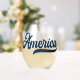 Zeigen Sie Ihre Liebe der USA mit diesem klassischen Edelweinglas, das das Wort in 'Amerika' in einem Retro-marineblauen Grafikskript enthält.