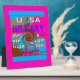 Retro USA Stronger Together Abstrakt Art Print Einführung in die "Retro USA Stronger Together Abstrakt Art Print", ein faszinierendes Kunstwerk, das eine Retro-Ästhetik mit kraftvollen Themen der Einheit und politischen Bedeutung verbindet. Dieses Stück enthält einen vertikal angeordneten fett formatierten Text, Set vor einem abstrakten Hintergrund mit dynamischen Farben und Formen. Das Design vermittelt eine Botschaft der Einheit und potenziellen politischen Bedeutung mit einer deutlich retro-ästhetischen, von magenta, blau und braun Rahmen Design gerahmt: Die Komposition umfasst die Ausdrücke "USA", "HILLARY", "We are Stronger Together" und "2016", überlagert durch einen abstrakten Hintergrund mit einer Spirale und einer schwachen Silhouette einer Person mit einer Fackel. Das Design ist von einem dünnen braunen Rand gerahmt, einem dünnen blauen Rand, und ist schließlich von einem dicken magentafarbenen Rahmen umgeben, wodurch ein strukturiertes und ausgewogenes Layout entsteht. Farben: Magenta: Die dominierende Farbe für den dicken Außenrand, die einen kühnen und auffälligen visuellen Einfluss bietet, der oft mit Retro-Design assoziiert wird. Blau: Wird für den dünnen Mittelrand und Details im Design verwendet und bietet eine kontrastreiche und Vintag inspiriert Touch. Braun: Der dünne innere Rand und einige Details des Designs werden braun gerendert, was Wärme und einen erdigen Ton verleiht. Weiß: Geeignet für den Text "USA" und "2016", wodurch ein starker Kontrast zum Hintergrund gewährleistet und der Text leicht lesbar wird. Multicolor Abstrakt Background: Im Hintergrund wird eine Mischung aus Grau, Grün und verschiedenen Blau-, Braun- und Weißtönen gehalten, die einen abstrakten und dynamischen Effekt erzeugt. Bilder/Motive: "USA" Text: Ganz oben positioniert, wird das Thema in diesem Text klar als USA bezeichnet. Text von "HILLARY": Dieser Verweis auf Hillary Clinton unterstreicht die Unterstützung einer prominenten politischen Persönlichkeit. "Wir sind enger zusammen" Text: Dieser Satz vermittelt eine starke Botschaft der Einheit und Solidarität und spiegelt die Themen der Gemeinschaft und der Zusammenarbeit wider. Text "2016": Damit wird ein spezifisches Jahr bezeichnet, in dem auf eine bedeutende politische Kampagne verwiesen wird. Silhouette einer Person, die eine Fackel hält: Eine schwache Silhouette, die Freiheit und Erleuchtung symbolisiert und die Freiheitsstatue darstellt. Spiralmotiv: Die prominente Spirale in der Mitte verleiht visuelle Energie und dient als Brennpunkt im Design. Gerahmtes Design: Die geschichteten Ränder schaffen ein Gefühl der Struktur und zeichnete die Aufmerksamkeit auf die Zentralelemente. Gesamteindruck: Das "Retro USA Stronger Together Abstrakt Art Print" ist ein visuell einnehmendes Stück, das Retroästhetik mit modernen politischen Themen verbindet. Es vermittelt Botschaften der Einheit, der Hoffnung und der Bedeutung, bereichert durch die symbolische Silhouette des Fackelhalters. Die Kombination aus fett formatiertem Text, abstraktem Hintergrund und überlagerten Rändern schafft ein visuell ansprechendes und nostalgisches Kunstwerk. Stellen Sie sich dieses inspirierend Stück vor, das Ihre Zuhause oder Ihr Büro aufhellt und als Erinnerung des Powers der Einheit und gemeinsamer Bestrebungen dient. Entdecken Sie die gesamte Produktpalette unserer Achempong Zazzle Kollektion und finden Sie das perfekte Stück für jeden Anlass. Liebe dieses Design? Teilen Sie es mit Ihren Freunden und Ihrer Familie!