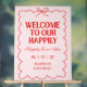 Begrüßen Sie Ihre Gäste an Ihrem besonderen Tag mit diesem Hochzeitsschild "Willkommen in unserem Happy End"! Mit einem romantischen, retro-valentinstagsinspirierten roten und rosa Design und einem handgezeichneten Doodle-Rahmen, verleiht dieses elegante Schild Ihrer Trauung oder dem Eingang zum Empfang eine warme, zauberhafte Note. Perfekt, um die Atmosphäre einer zeitlosen Liebesgeschichte einzufangen, ist es eine schöne Art, Gäste zu begrüßen und den Ton für Ihre unvergessliche Feier zu setzen.
