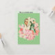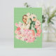 Einladungen mit einer Vintagen Illustration eines Paares aus den 50er Jahren, umgeben von Blume mit einem Hintergrund von Mini-Grünen Herzen. Passen Sie sie mit Ihrem eigenen Text an. Retro cool!