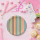 Retro vertikale orangefarbene blaue und gelbe rosa pappteller