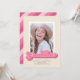 Diese lustige Single Foto Abschluss Ankündigung beinhaltet das Wort Graduate geschrieben in einem Retro-Stil Skript in Rosa Tönen. Auf der Rückseite der Karte ist ein diagonales Streifen-Muster mit einer Farbe, die das Muster koordiniert.