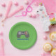 Party-Papier-Teller mit einer Abbildung eines Spielecontrollers. Personalisieren Sie sie mit dem Namen Ihres Kindes und dem Text Ihrer Wahl für einen kompletten Look.
