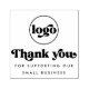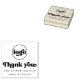 Briefmarke aus Gummi mit dem Logo und dem Text "Danke" in einem fett angelegten Retro-Schriftart und dem unten stehenden "für die Unterstützung unseres kleinen Unternehmens" anpassbaren Text.