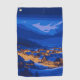 Retro Village Mountain Blue Gold Landschaft Golfhandtuch