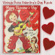 Dieses bezaubernde Puzzle aus der Mitte des Jahrhunderts mit einem Jungen, der mit Cowboyhut, Stiefeln und Western-Garb verkleidet ist und seine Gitarre schlüpft, während sein Junge schaut. Die Beschriftung lautet "Git Along Little Valentine. Ich führe es gut an, dir das Herz zu vermitteln!"