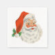 Papierservietten mit festlichem Retro-Bild. Jolly alter Weihnachtsmann mit seinen roten, rosafarbenen Wangen und seinem freundlichen Lächeln. Ein bisschen alte Nostalgie für die alten Zeiten, dieses Bild bringt Erinnerungen der Feierlichkeiten aus der Weihnachtszeit zurück.