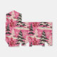 Scattered across the pink canvas are delicate and intricately drawn black and white Christmas trees. These trees vary in size and style, creating a visually interesting pattern that captures the essence of a winter wonderland. The black outlines of the trees add a classic touch, reminiscent of vintage illustrations.