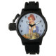 Uhr, Klassische Damenuhr mit schwarzen Lederarmband