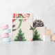 Fun Retro-Packpapier mit dem Weihnachtsmann reiten auf einem riesigen Zuckerrohr mit grünem Band, und Kiefern wartete für Weihnachten dekoriert zu werden. Fun Design aus den 1950er Jahren.