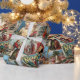 Dieses Verpackungspapier ist eine festliche Collage mit Weihnachten- und Feiertagsdarstellungen und Karten. Die Farbpalette umfasst reiche Rottöne, Grüntöne, Blues und Golden, was das nostalgische und festliche Gefühl der Collage verstärkt.