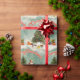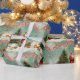 Dieses Retro-Retro-Weihnachtsgeschenkpapier zeigt eine nostalgische Szene, die das Wesen eines Winterwunderlandes einfängt. Der Hintergrund des Papiers ist mit einer ruhigen, schneebedeckten Landschaft geschmückt, die einen ruhigen Rahmen im Freien schafft. Der Himmel ist weich, eisblau, was auf einen knusprigen Wintertag hindeutet. Neben Santa steht ein schön geschmückter Weihnachtsbaum, dessen Äste mit glitzerndem Schnee bedeckt sind. Der Baum ist mit bunten Ornamenten, glänzenden Bauern geschmückt. Unter dem Baum, gepflegte Geschenke in festlichem Papier und Bögen tragen zur fröhlichen Szene bei.