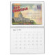 Ein Kalender mit Bildern von den Decken von Faltleinenpostkarten der 1930er-1950er Jahre. Diese Karten wurden von Hand entworfen und farblich getönt, um die Augen der Touristen in den USA zu fangen, von Küste zu Küste.