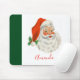 Ein festliches Retro-Bild. Jolly alter Weihnachtsmann mit seinen roten, rosafarbenen Wangen und seinem freundlichen Lächeln. Ein bisschen alte Nostalgie für die alten Zeiten, dieses Bild bringt Erinnerungen der Feierlichkeiten aus der Weihnachtszeit zurück. Feierlich und unterhaltsam in warmen Ferienfarben Eine grüne Grenze entlang der links Seite.