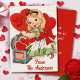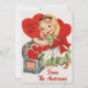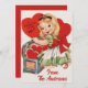Diese niedliche Valentinerkarte zeigt, wie ein junges Mädchen Mitte des Jahrhunderts eine Brust voller Tapetenherzen öffnet, mit einem großen Herz, das "Ein Valentin, um HI zu sagen!" verkündet. Personalisieren Sie diese, indem Sie Ihren Namen an die Vorderseite hinzufügen, die Nachricht auf der Rückseite anpassen und/oder Ihren Namen hinzufügen.