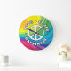 Retro Uni Schlafzimmer Wandleuchten mit coolem Symbol für Friedenszeichen und farbenfroher Hintergrund auf der Uhr Gesicht in diesem sechziger oder siebziger Jahre Ära dekorative Wanddekor-Uhr Design für Ihre Küche oder jedes Zimmer in Ihrem Haus will Sie, um einige bunte Dekoration und Charakter hinzuzufügen.