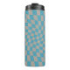 Retro Warped Grau Blue Karo Karo überprüft Thermosbecher