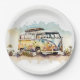 Retro-Watercolor-Hippie-Bus mit Blume Pappteller