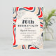 Retro-Blume mit Bogenrahmen auf grauem und rotem Wellenlinien Hintergrund Geburtstagseinladung. Kann für jedes Alter angepasst werden!