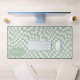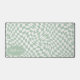 Steigen Sie mit dieser modernen Wavy Checkerboard Muster Personalisierte Schreibtischmatte auf. Diese Matte präsentiert eine spielerische Drehung auf einem klassischen Schachbrett, mit einem kugelförmigen Wellenmuster in Minzgrün und Creme. Das personalisierte Feature bietet eine zusätzliche Touch an Individualität und macht Ihren Arbeitsbereich zu einem echten Zuhause. Sein Design verbindet mühelos eine moderne Ästhetik mit einer Touch von Launen, die jeden Schreibtisch in ein Statement-Stück verwandelt. Ideal für den persönlichen Gebrauch oder als einzigartiges Geschenk ist diese Tischmatte eine hervorragende Fusion von Spaß und Funktionalität. Personalisieren Sie dieses benutzerdefinierte Design mit Ihrem eigenen Namen.