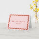Eine stilvolle Retrokarte im Bridesmaid-Stil mit einem gewölbten Kallop-Rahmen in Terrakotta mit einem rot-rosa Hintergrund und Terrakotta-Text. Bleiben Sie bei Ihrer handgeschriebenen Nachricht drinnen.